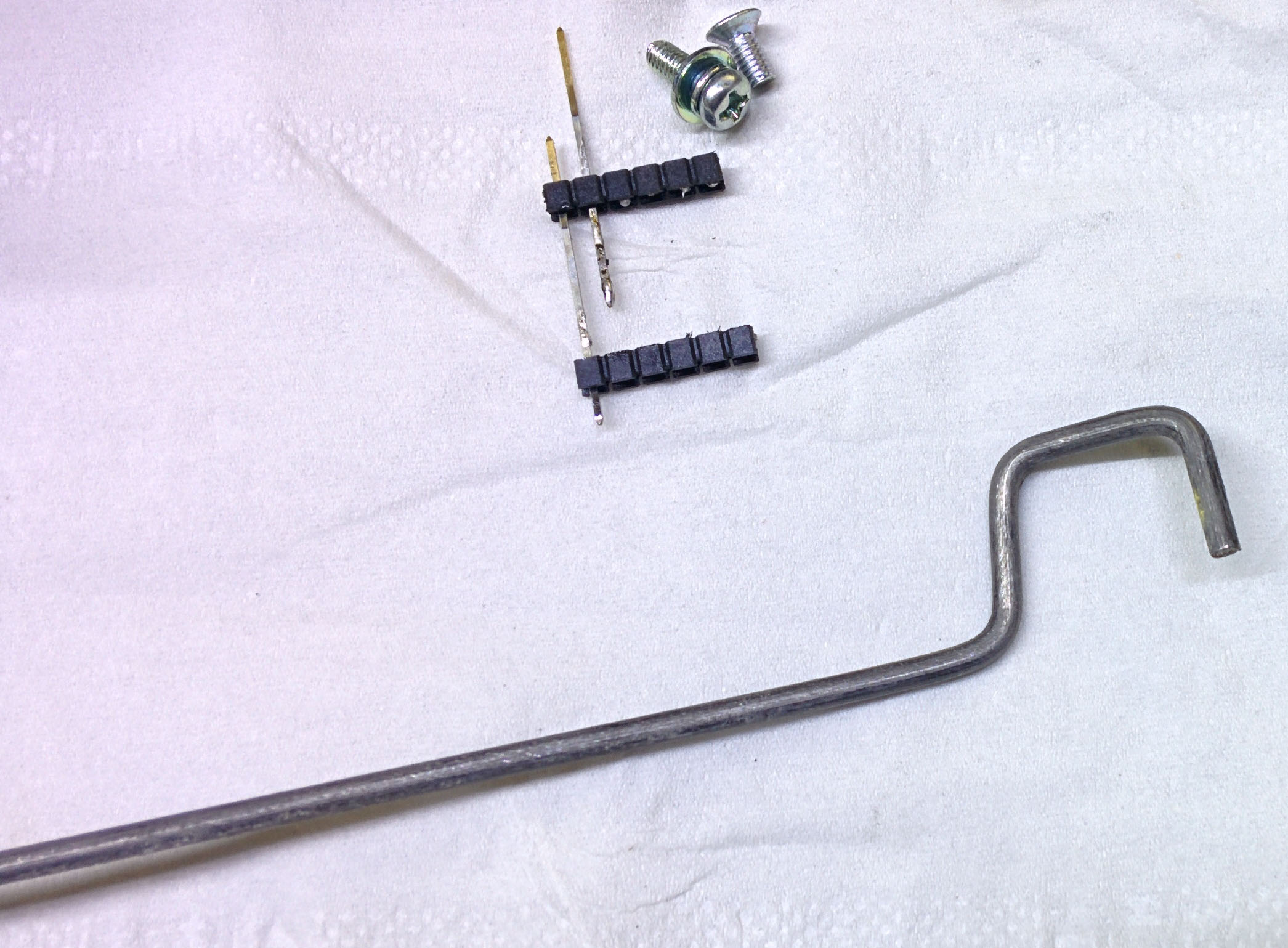 为了方便拆抽头,降低损坏风险,建议先做一个小钩子,找根1MM以上粗的铁线(拆个铁骨晾衣架也行)弯成下图的形状