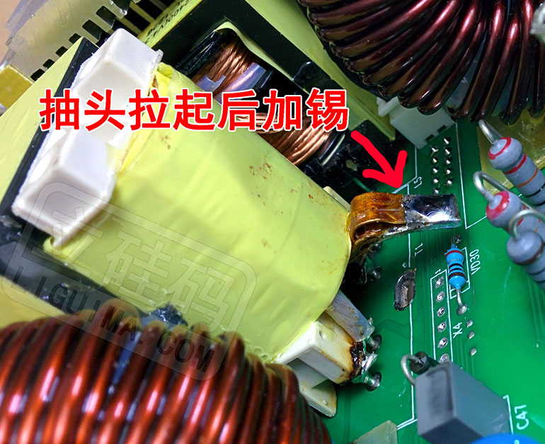 烙铁功率够大才好拆这个抽头,功率大的可以直接从背面烫,功率小就只能从前面烫