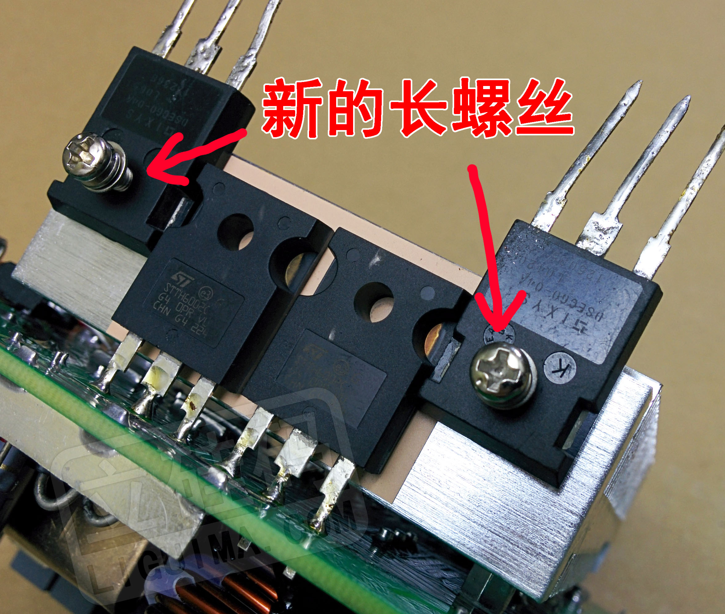 螺丝洞不合适就要把原机两个整流管互相靠近,远离螺丝洞,给新管子让出空间。